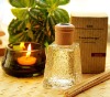 SpecificationsReed Diffuser, Aroma diffuser, air diffuser, fragrance diffuserBottles: glass, ceramic, wooden, crystalCaps: plastic plunger, aluminum cap, wooden cap, glass cap,Volume: 50ml/100ml/150ml/200ml//300ml/500ml, depends Fragrance: various fragrance oils are optional customization, lasting at least 1 monthPackaging: each bottle 100ml with 6pcs/8pcs reeds, 12PCS/inner box, 48pcs/ctn; 56pcs/ctnBox: Carton box, PVC box, color box, bamboo box pack etc. Can custom box according to your designReed: rattan sticks with types of natural, bleached, dyed of types and styles of straight, curly, decorated with wood balls or flowers etc.Advantages of a Reed Diffuser* Very popular in field of home fragrances* smoke, wax, mess, flame, heat and electric power free, no going out and no added chemicals* enhances the aesthetics of any room environment* releases a refreshing fragrance for months at a time* can be placed almost anywhere, even in the office.How to Use a Reed DiffuserStep 1: Remove the sticks that were originally placed in the bottle to absorb the essential oils.Steps 2-4: Flip sticks so that the “dry” side of the sticks is now closest to the bottle and the saturated end is in the air.Step 5: Place unsaturated (dry) end of the sticks into the bottle and then let your reed diffuser naturally permeate your space. Your reed diffuser will continue to evaporate into the air, creating a subtle and luxurious scent. To refresh the reed diffuser fragrance, simply repeat the above stepsContact Information:MINSON D&A CO., LTDADD: 54th East Rd. Yongtai Yuanxiatian, Baiyun District, Guangzhou, China.CTC: Carolyn LiTEL.: +86-20-28042725